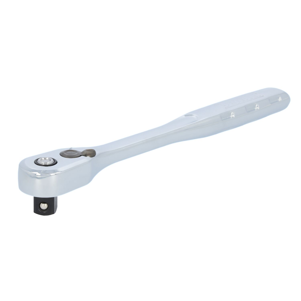 The Quick-Release ratchet has a 5 degree arc swing making it easy to maneuver in restricted areas. The Quick-Release mechanism for positive lock on sockets. Its contoured, ergonomically designed handle with anti-slip grooves help make this ratcheting wrench comfortable to use and provides added control.