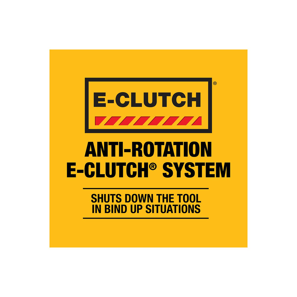 Anti-Rotation E-CLUTCH System protects the user in bind up situations by stopping the rotation of the bit