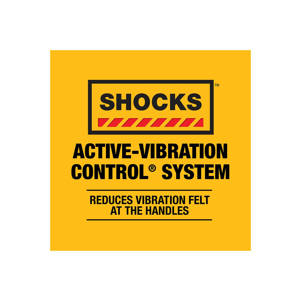 Shocks active vibration control system reduces vibration felt by the user at the handles, compared to rotary hammers without this feature