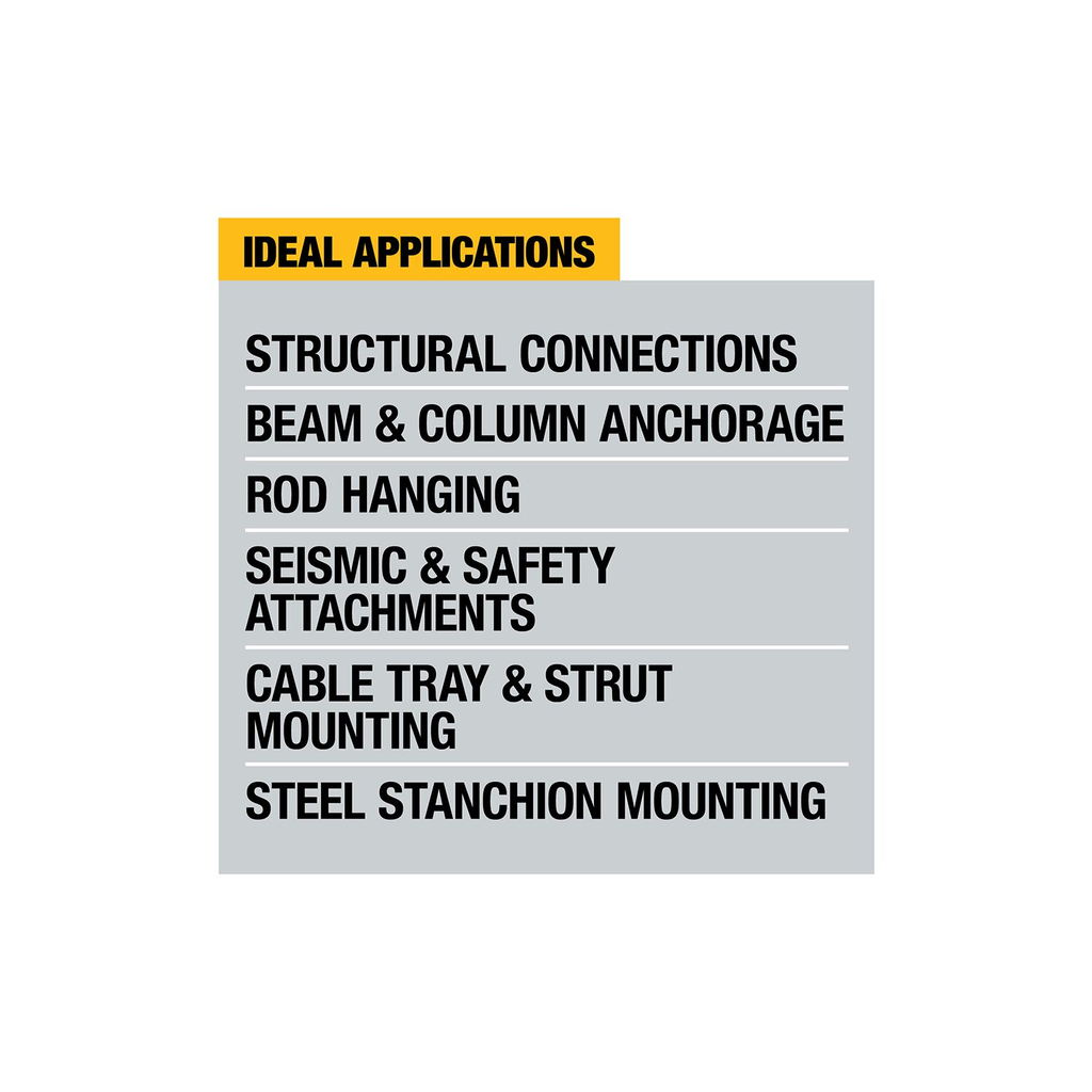Lightweight design makes this tool ideal for structural connections, beam & column anchorage, rod hanging, seismic & safety attachments, cable tray & strut mounting, and steel stanchion mounting