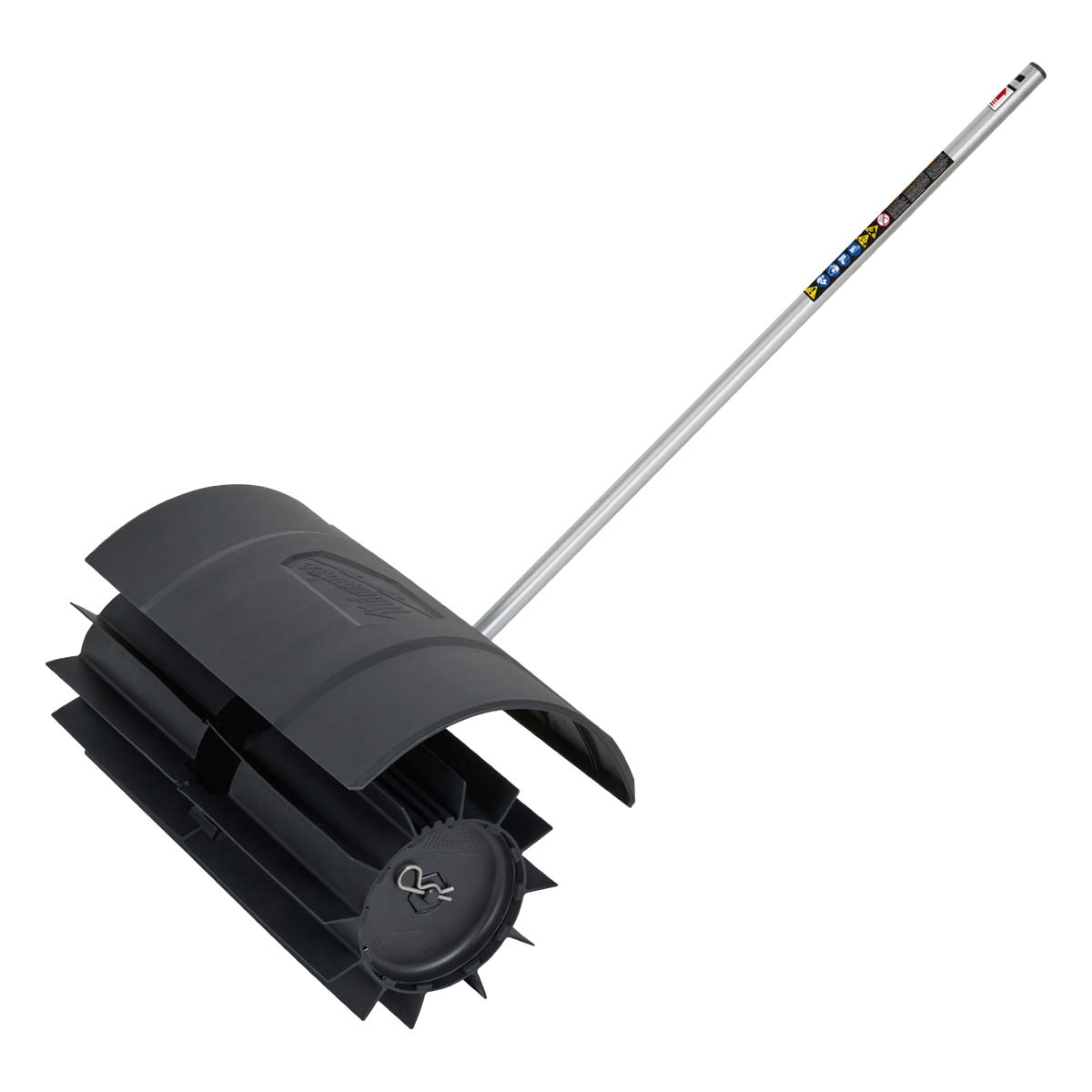 Our M18 FUEL™ QUIK-LOK™ Rubber Broom Attachment is powered by the M18 FUEL™ Power Head w/ QUIK-LOK™ and is compatible with our split boom M18 FUEL™ QUIK-LOK™ Attachment System. This split shaft attachment’s optimized rubber paddle design is great for removing debris like mulch and gravel from grass and allows for longer life while covering a 23″ clearing width. Our rubber broom’s optimized guard design offers the best material containment. Our QUIK-LOK™ Attachments feature protected drive shafts for increased durability against drops and storage elements. The rubber broom attachment also features optimized gearing to manage the cordless M18 FUEL™ Power Head RPM output specifically for this attachment.