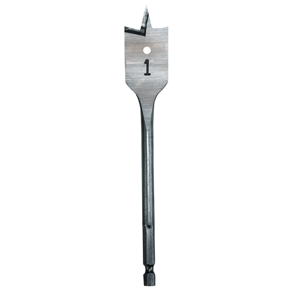 Bore small, clean holes at any angle in a variety of materials with the economical Milwaukee® 1 in. x 6 in. flat boring bit. This premium quality flat boring bit is made of heat-treated high carbon steel, so the drill point and cutting edge can be resharpened for cost savings and long life. Bore clean, fast holes at any angle in wood, plastic, plywood and Formica. This bit offers a 6 in. drilling depth but can be used with a 12 in. extension (48-28-3350) for extended deep-hole drilling.