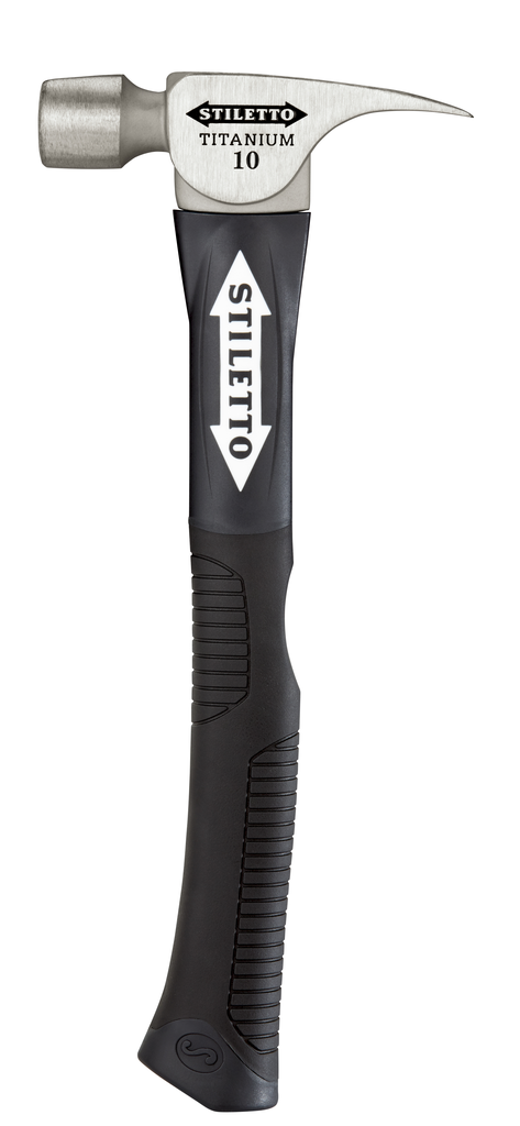Smallest of our solid titanium hammers heads, the Stiletto FH10C-F is a 10 oz titanium smooth face finish hammer with a 14.5 in. hybrid fiberglass handle. Our new fiberglass handles are more durable, have better feel, and have more prying strength than hickory. The hammer has a straight claw design and Stiletto’s signature magnetic nail starter. The FH10C-F has the comparable striking force of 16 oz steel hammer and is recommended for professional framing, remodeling or finish work. Stiletto Tool company has been synonymous with high quality hand tools dating back to 1849. With our long history and strong reputation, the brand has evolved into the modern day standard for innovative, lightweight, ergonomic, productive, and professional tools. We set the standard with our line of premium titanium hand tools that span numerous trades such as framing, remodeling, finish work, siding, demolition, concrete, and drywall. Titanium is 45% lighter weight while providing the same striking force and strength as steel. Titanium tools also produce 10 times less recoil shock which helps reduce carpal tunnel syndrome. The combination of these features means less down time, more productivity, and most importantly less pain while working.